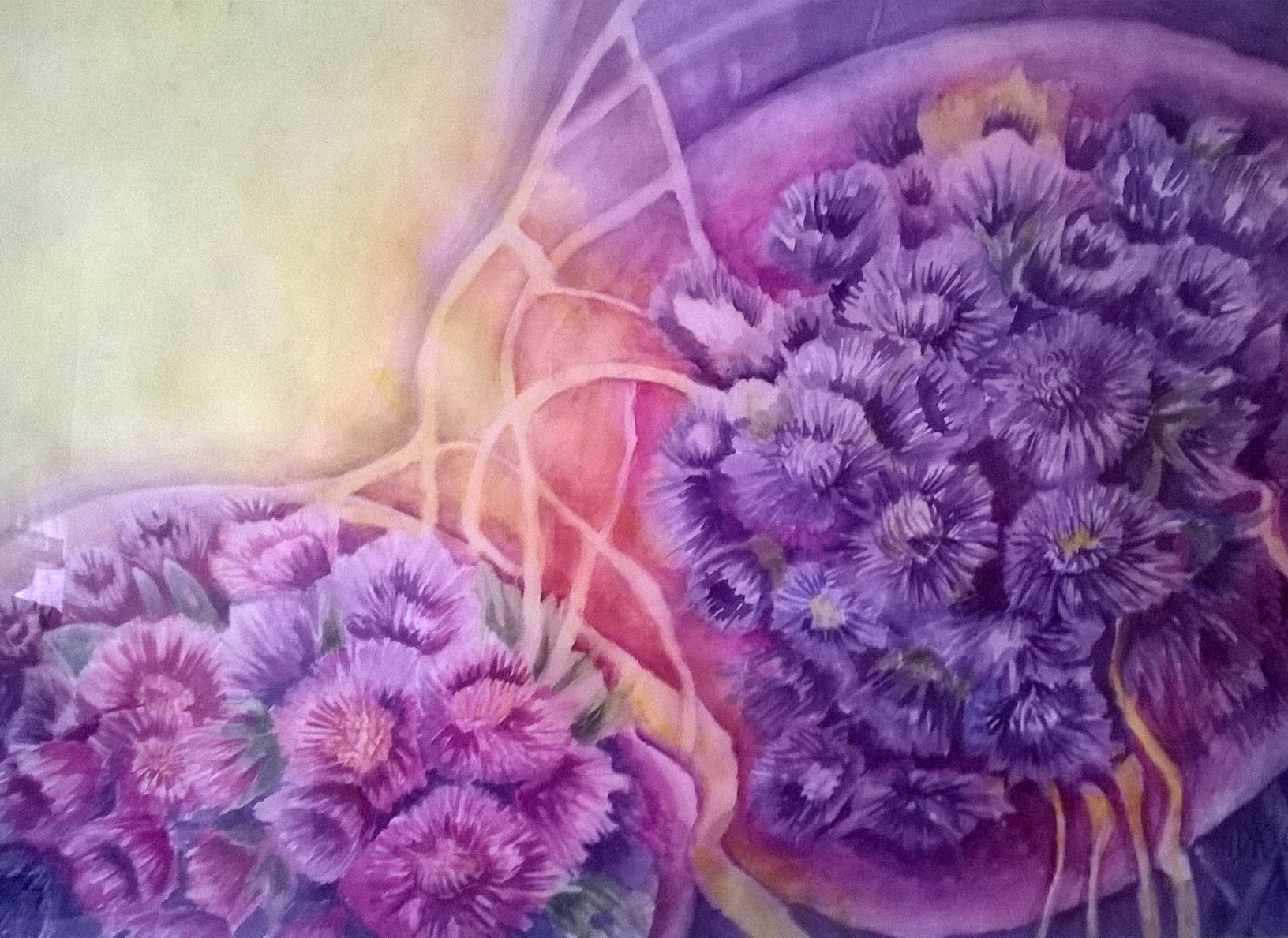 W tle - grafika Pawła Ryżki p.t. ROBOTNICE SZTUKI - pierwowzór muralu, jaki znajduje się na południowej ścianie Domu Kultury LSM