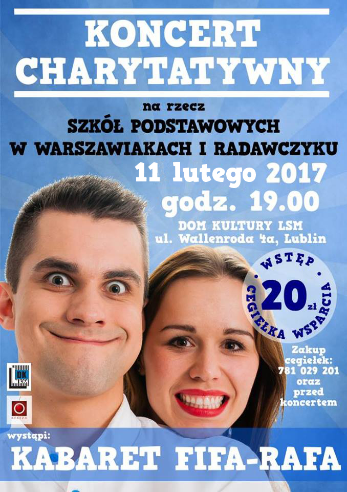 Koncert Charytatywny na rzecz utrzymania Szkół Podstawowych w Warszawiakach i Radawczyku w Domu Kultury LSM.