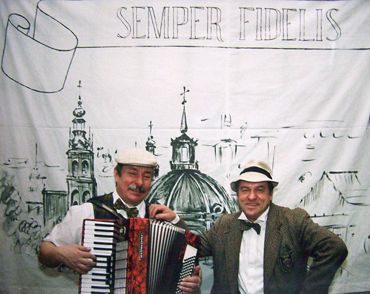 Od zawsze śpiewają i grają lwowskie piosenki. Najpierw jako małe bajbusy w swoich rodzinach. Następnie w kabaretach „Pacałycha”, „Siupryza” i „Paka Rycha”. Od dłuższego czasu występują w duecie: Jędruś – gra, Adaśku – śpiwa. Występowali od Mrągowa po Kłodzko i od Szczecina po Przemyśl. A nawet w „tiurmie” we Wronkach, no oczywiści i we Lwowi. Często powtarzają: