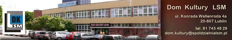 /* <img src="http://www.domkulturylsm.pl/wp-content/uploads/2015/02/DKLSM.jpg " title="Dom Kultury Lubelskiej Spółdzielni Mieszkaniowej" /> */